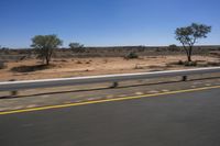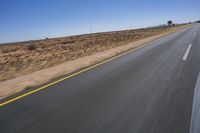 An endless road stretching across the beautiful landscape of South Africa, with a clear sky and rolling plains in the background.