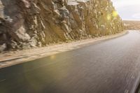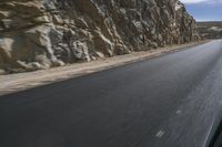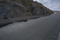A scenic road with a yellow line cutting through the African landscape in South Africa, surrounded by mountains and vegetation. The road surface is made of asphalt, with a clear sky and clouds in the background.