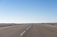 A straight road stretches through the vast plains of Texas, leading towards the horizon under a clear sky.