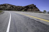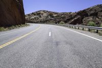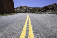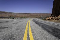 A straight road curves through the stunning landscape of Utah's Canyonlands, with red rock formations and clear blue skies as far as the eye can see.