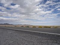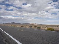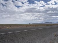 A lonely highway in Utah USA stretches into the horizon, with mountains, clouds, and yellow lines defining the endless road surface and the rural landscape of the highland plain.