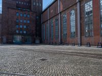 Berlin's urban landscape features a harmonious blend of classic architecture and modern urban design. With brick walls and cobblestone roads, the city showcases storerooms and warehouses that tell tales of its industrial past. Open spaces and clear skies provide a backdrop for city life, while roads and railways weave through this European metropolis. Vegetation softens the urban environment, offering a unique glimpse into Germany's architectural heritage.