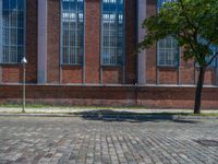 In Berlin, classic architecture harmonizes with urban design, under a clear sky. The city is a tapestry of cobblestone roads, brick walls, and storied warehouses. Factories and depots echo its industrious past, while modern stores and storerooms add to its vibrant city life. Shadows cast by the urban profile create a dynamic play between light and surface, as vegetation punctuates the city's industrial charm. Experience Berlin's unique blend of Europe’s architectural and urban heritage.