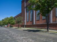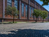 Experience Berlin's vibrant city life, where classic architecture merges with urban design. Cobblestone roads and brick walls reflect the city's industrial past, while shadows cast by storerooms and warehouses add a dramatic touch. Explore the harmonious blend of vegetation amidst the urban landscape, under the clear European skies. Discover how Berlin's architectural heritage coexists with modern urban life in Germany.