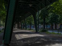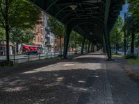 Berlin showcases a dynamic blend of classic architecture and modern urban design. Cobblestone streets lead to bridges that span the city's waterways, casting hard shadows and creating picturesque scenes. As you walk straight down the road, the interplay of light and shadow highlights the city's European charm. From underpasses to wet surfaces reflecting the day's clouds, Berlin offers a captivating urban landscape that reflects Germany's rich cultural heritage.