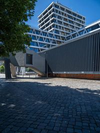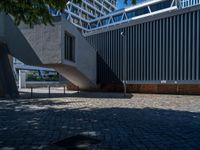 Immerse yourself in the vibrant city life of Berlin, where modern architecture and historic cobblestone roads coexist harmoniously. The bustling business district showcases sleek office buildings against a backdrop of clear skies and urban design. Shadows play across the cityscape, creating a dynamic interplay of light and shadow. From the cobblestone streets to the open spaces, Berlin's European charm shines through, offering a glimpse into the heart of Germany.