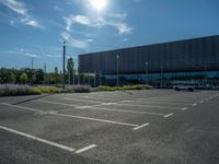 Berlin, a vibrant city in Germany, showcases a blend of modern architecture and urban design. Roads paved with asphalt intersect the city, leading to open spaces and concert halls. The sunshine bathes the architecture in a warm glow, enhancing the charm of city life. Parking lots serve as practical elements within this urban tapestry, while the sun often visible through clouds underscores Berlin's dynamic atmosphere, making it a key European destination.