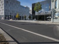 Exploring the modern architecture, futuristic glass walls, and mixed-use buildings of Berlin, Germany in the metropolitan area on a beautiful day with clear sky and contrails in the background.