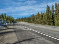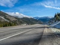 In the stunning landscapes of Colorado, a winding road cuts through the snow-covered mountains and dense forests. The road, made of smooth asphalt, leads to breathtaking views of the surrounding nature. The clear blue sky and fluffy clouds create a picturesque backdrop for this scenic drive. Tall trees line the road, adding to the beauty of the landscape. Experience the tranquility and serenity of Colorado's snowy mountains on this unforgettable road trip.