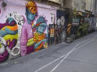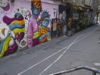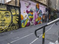 A sunny day in Berlin reveals the vibrant urban art scene of the city. Graffiti, murals, and street art line the roads and courtyards of the German city, providing a tourist attraction for those interested in the visual arts. The yellow infrastructure of the Hinterhof neighborhood draws attention to the city life and mode of transport, showcasing the vibrant urban design of the art district.