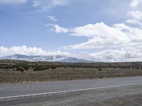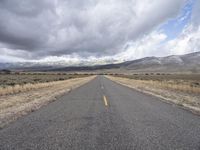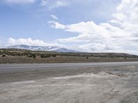 A freight train travels along a straight road in the rural landscape of Utah, USA, with mountains and grey skies in the horizon. The natural environment of the sea and wild steppes creates a profile of the low tree line, while the infrastructure of the highway and railway provides an asphalt road surface to explore the mountain landforms and Salt Lake City.