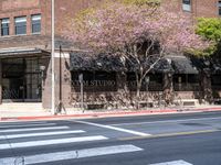In Los Angeles, California, the urban landscape is a vibrant mix of classic architecture and modern roads. Storefronts line the asphalt streets, offering a glimpse into the city's bustling day-to-day life. With a clear sky above, this iconic USA city presents a unique profile, blending its rich architectural history with contemporary urban elements.