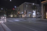 An overview of the urban landscape of Los Angeles, California, USA at night. The metropolitan area is illuminated by the artificial light of street lamps, shop signs, and house facades, while the residential area is dark and classy, providing a contrast to the high-class stores and hotels of Beverly Hills. The classic architecture of the city and its mixed-use infrastructure of buildings, roads, and trees provide an interesting contrast to the modern city.