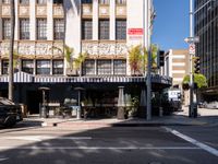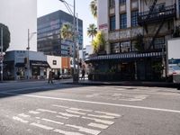 In the bustling city of Los Angeles, California, the urban landscape is marked by classic architecture and vibrant storefronts. Under clear skies, the roads are lined with bars, restaurants, and shops, offering a rich tapestry of the city's cultural life. From the asphalt roads to the architectural profiles, Los Angeles embodies the dynamic spirit of urban USA.