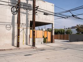 Los Angeles, California, showcases its vibrant urban life with expansive asphalt and concrete roads set against clear skies. The city's residential areas highlight a blend of modern urban design. Walls and roads crisscross through the neighborhoods, offering a glimpse into daily life in this iconic US city.