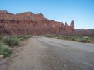Located in Utah, USA, the Fisher Towers rise majestically from the surrounding open space. The landscape is a harmonious blend of dirt, grass, gravel, and sand surfaces, creating a natural canvas for the towering rock formations. At dawn, the sky is adorned with clouds, casting a magical glow over the canyons and greenery. This picturesque setting offers a serene escape into nature, where visitors can immerse themselves in the beauty of the Fisher Towers.