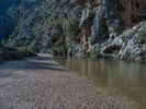 In the heart of Majorca, Balearic Islands, Spain, a rugged landscape unfolds with rocky walls and open spaces. The terrain is a blend of dirt and gravel surfaces, creating a natural canyon-like environment. Walls of stone and rock define the surroundings, offering a glimpse into the untouched beauty of Europe's nature. During the day, the sun illuminates the vast expanse, highlighting the unique textures of the dirt and gravel areas.