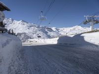 Traveling through the Moraine and Glacial landscapes in the French Alps, skiers and tourists alike take in the breathtaking views of the frozen roads, snow-covered trees, and majestic mountain ranges. A gondola and cable car tracks are seen in the distance, allowing visitors to explore the recreation and tourism attractions the country has to offer.