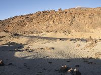 Driving along the highway in the Tenerife desert of Spain, one can see the unique geology of the area, with its mountains, rock formations, and sand slopes. The natural environment and infrastructure of the area provides a stunning road trip experience.