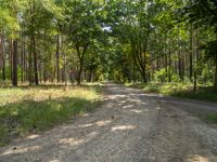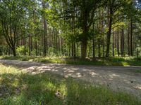 A rugged dirt road meanders through a forest, with gravel and tracks leading the way. Nature provides a stunning landscape for a day of exploration in Berlin.