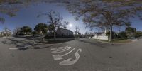 In the heart of Los Angeles, California, residential areas stretch under the clear sky, offering a glimpse into city life in the USA. Asphalt roads run straight down the urban landscape, defining the profile of this sprawling metropolis. The residential streets are a testament to the vibrant and diverse character of Los Angeles, where urban living meets everyday tranquility.