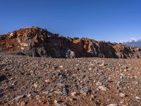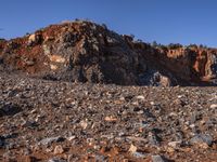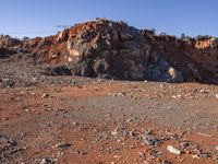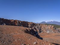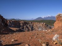 A winding road navigates the Mars-like terrain of the Yunnan province in China, with its badlands, mountains, and outcrops of igneous rock. This view of the canyon, dotted with trees and graven with dirt and gravel, reveals a wild and unique landscape, seemingly untouched by human hands.