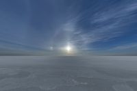Experience the endless expanse of salt flats under a brilliant, sunny sky. The landscape, reminiscent of an open skydome, offers a unique desert environment where the sun is visible throughout the day. Salt lakes glisten under the sunshine, creating a stunning natural spectacle. Discover the beauty of these open spaces, where clouds and the sun play a vibrant dance across the horizon.