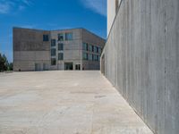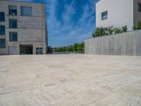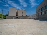 In the heart of Spain's bustling business district, modern architecture and open spaces dominate the landscape. The clear blue sky provides a stunning backdrop for the sleek office buildings and urban design. Walls made of concrete and pavers line the streets, leading to spacious plazas where business and leisure merge. The city's vibrant atmosphere is enhanced by the mix of contemporary and traditional architecture. Clouds float above, reflecting the dynamic nature of this European city.