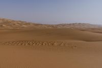 Off the beaten path, the vast expanse of the Liwa Desert in the United Arab Emirates reveals its rugged surface and Aeolian Landforms like singing sand dunes beneath the clear sky.