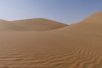 The sun rises on the horizon of the Liwa Desert in the United Arab Emirates, illuminating a vast landscape of rugged, sand-covered dunes known as an 'erg.' An off-road track winds its way through the open space, providing a unique perspective of this unique aeolian landform.