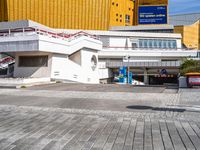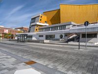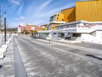The buildings, roads, and public spaces of Berlin, Germany, create a unique urban design that can be seen in this image. The modern architecture, cloudy sky, and road surface create an inviting atmosphere. This scene is typical of the residential areas in this European transport hub.