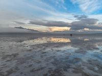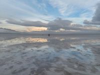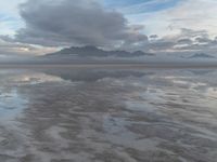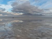 At dawn, Salt Lake City reveals its serene beauty with a reflective salt lake surrounded by Utah's desert landscape. The grey sky casts a gloomy yet captivating ambiance, where fog gently dances over the water, creating a mirror-like effect. This natural open space offers a unique glimpse into the harmonious blend of nature and tranquility in the USA.