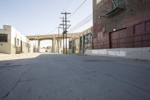 A bustling neighborhood in Los Angeles showcasing its unique architecture and street art, with colorful murals adorning the buildings. The urban landscape features a mix of modern structures, open spaces, and busy roads, creating a vibrant atmosphere. Transport vehicles traverse the concrete and asphalt roads, while the facades and windows of buildings display intriguing artwork. This travel destination offers a captivating blend of culture, art, and urban charm.