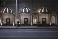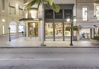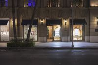 A classic residential area in Los Angeles, California, USA, featuring an array of mixed-use property, public space, and high class architecture illuminated by artificial light. Asphalt roads, hotel lobbies, doorways, store fronts, and Beverly Hills mansions all contribute to the metropolitan area's unique nightlife landscape.