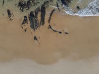 Aerial view of the coastal landscape in Portugal, with its beach, slope, wood, mountain landforms, lake, and ocean. The natural environment features aeolian landforms, land painting, and the singing sand of the shore, creating a diverse palette of shapes and tints and shades. A perfect spot for recreation and to appreciate the geological phenomenon of the world.