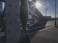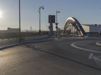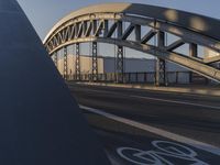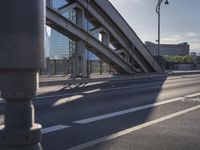 The bustling metropolitan area of Frankfurt, Germany, is a unique blend of modern infrastructure and ancient architecture. As the sun rises, the sun's rays light up the cityscape from the highway and arch bridge to the high-rise buildings and trestles. The clarity of the sky gives way to contrails and sunshine, making for a beautiful day in the European city.