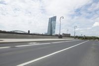 Early morning commuters rush across an extradosed bridge in Frankfurt, Germany, as the city's metropolitan area comes to life with vehicles and infrastructure creating a fixed link between two sides of the city.