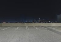 A view of a modern cityscape in the winter with a high-rise building, a highway entrance, a parking lot, and the horizon line above a marina.