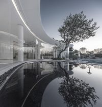 A stunning view of a futuristic architecture in Foshan, China, showcasing its modern design and innovative features against a clear sky.
