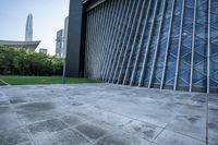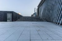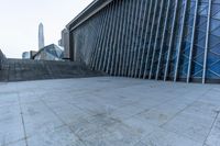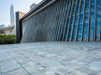 A panoramic view of modern architecture, including open space, walkways, and towering structures, can be seen in Shenzhen, Guangdong, China. The cityscape is dotted with buildings, fences, trees, and public spaces, with a clear sky and a layer of asphalt beneath the roads and walkways. This residential area is a perfect example of futuristic architecture and urban infrastructure.