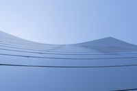 The skyline of downtown Los Angeles, California, USA, is a mix of modern architecture and open space, with a line of buildings meeting a blue horizon that fades into the azure sky. The energy of the city, and the calm of the atmosphere, come together in a unique urban experience made of wood, wind, and water.