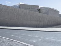 A composite view of a modern cityscape in Tenerife, Spain, featuring Brutalist architecture, concrete bridges, highways, roads, and open spaces. The buildings are made from a variety of materials including cement, concrete, asphalt, granite, and rock, with a clear sky above and a landscape of trees, walls, stairways, and roofs. The urban infrastructure is made up of sloped lanes, curbs, tiles, and pavers.