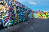 Colorful graffiti wall in the art district of Los Angeles, California, USA, with city life and urban design vibes