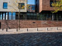 A residential street in Hamburg, Germany is seen from a profile view, with asphalt, concrete, and shadows during the day in Europe.