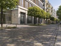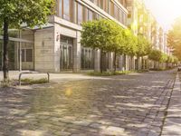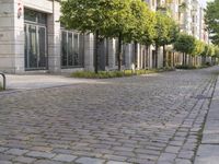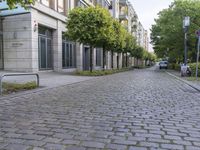 The bustling city of Berlin, Germany, is seen here with its modern architecture, residential areas, business district, and urban design. Cobble stones, asphalt roads, trees, doorways, windows, and street lights create a unique biome of urban living. Automobiles, yellow street lamps, and a variety of flooring materials add to the experience of this vibrant city.