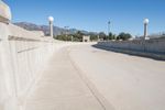 A clear day in the city of Los Angeles, California reveals a rugged, elevated bridge, providing a view of the residential suburbs below.