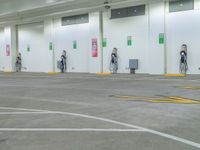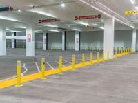 An aerial view of the residential area of Los Angeles, USA, with a parking garage, parking lot, and asphalt roads lit up by artificial light seen from a high and one quarter perspective.