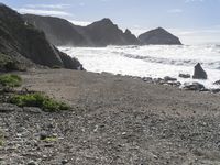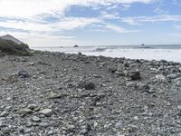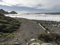 A scenic view of the Pacific Coast Highway entrance to Big Sur, California, USA, featuring a coastal cliff, rocky shore, and a boat ramp near the open water. The scene is illuminated by the warm light of the day, and the natural environment of the area, including the soil, vegetation, and geology, is visible in the landscape.