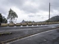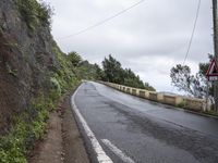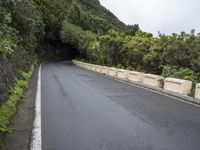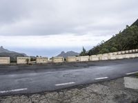 This view shows the highway cutting through the Tenerife highland landscape, surrounded by nature, vegetation, and mountain landforms. The infrastructure includes a guard rail, road surface, and tar lane, all leading to a valley overlook.