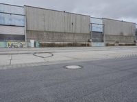 The view of the modern city of Hamburg, Germany, reveals the classic architecture of the buildings, the roads and the pier, the public and recreational spaces, the warehouses and the factories, the trees and the street art, and the river with its harbor and loading docks. The grey sky reflects on the asphalt and the concrete surfaces, emphasizing the city's infrastructure.
